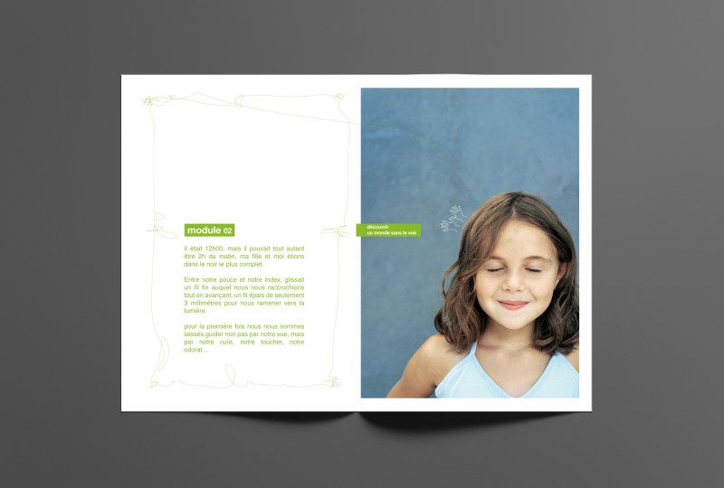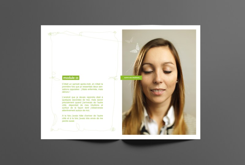 Simplement en tournant la page, la seconde lecture du concept nous permet de découvrir ce même portrait qui, entre temps, a ouvert les yeux, prêt à se souvenir, prêt à nous mettre dans la confidence, prêt à nous livrer toutes les informations détaillées au sujet de ce module qui l’a ému.