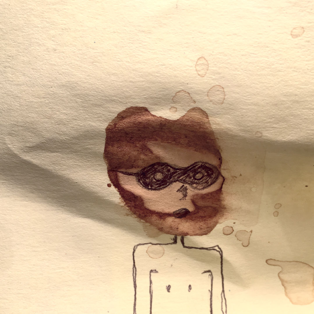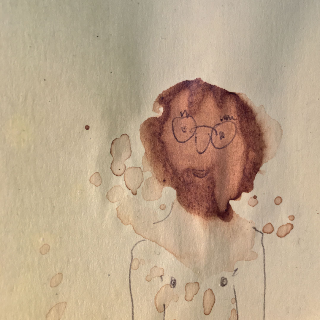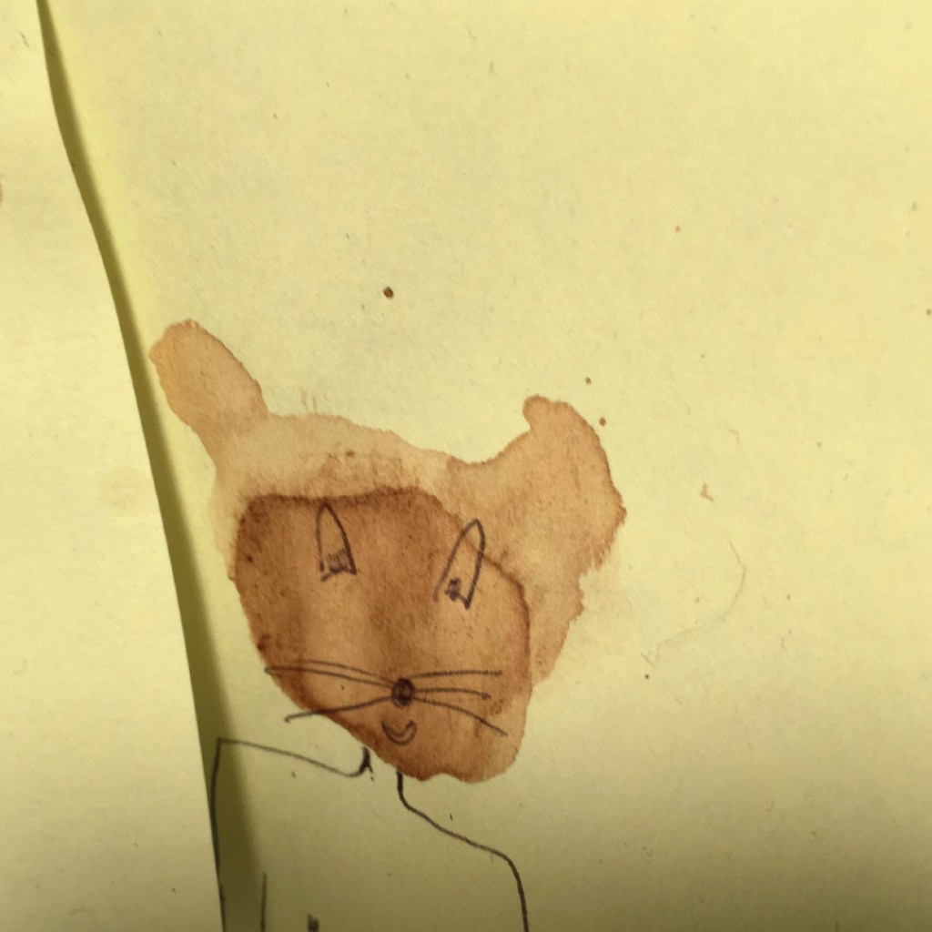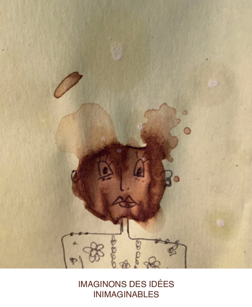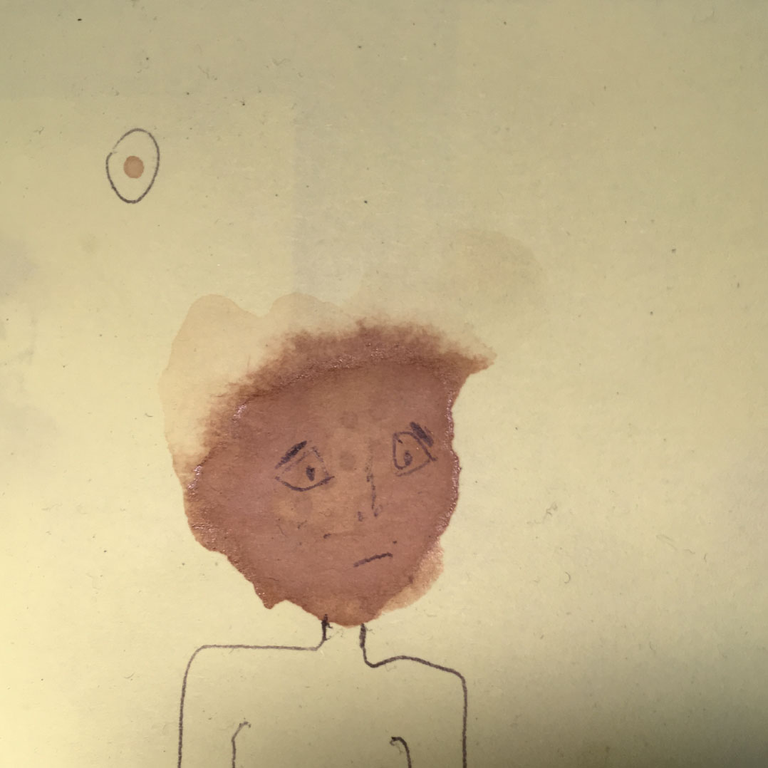 Durant une année entière, tout au long de la journée, en posant nos cuillères à thé sur des Post-it pour éviter que l’eau colorée ne goutte et ne se répande sur nos plans de travail, des tâches de thé se sont formées dessus. Elles se sont diffusées puis une fois sèches et avec l’aide d’un Bic en quelques traits et quelques secondes l’inimaginable à pris vie.