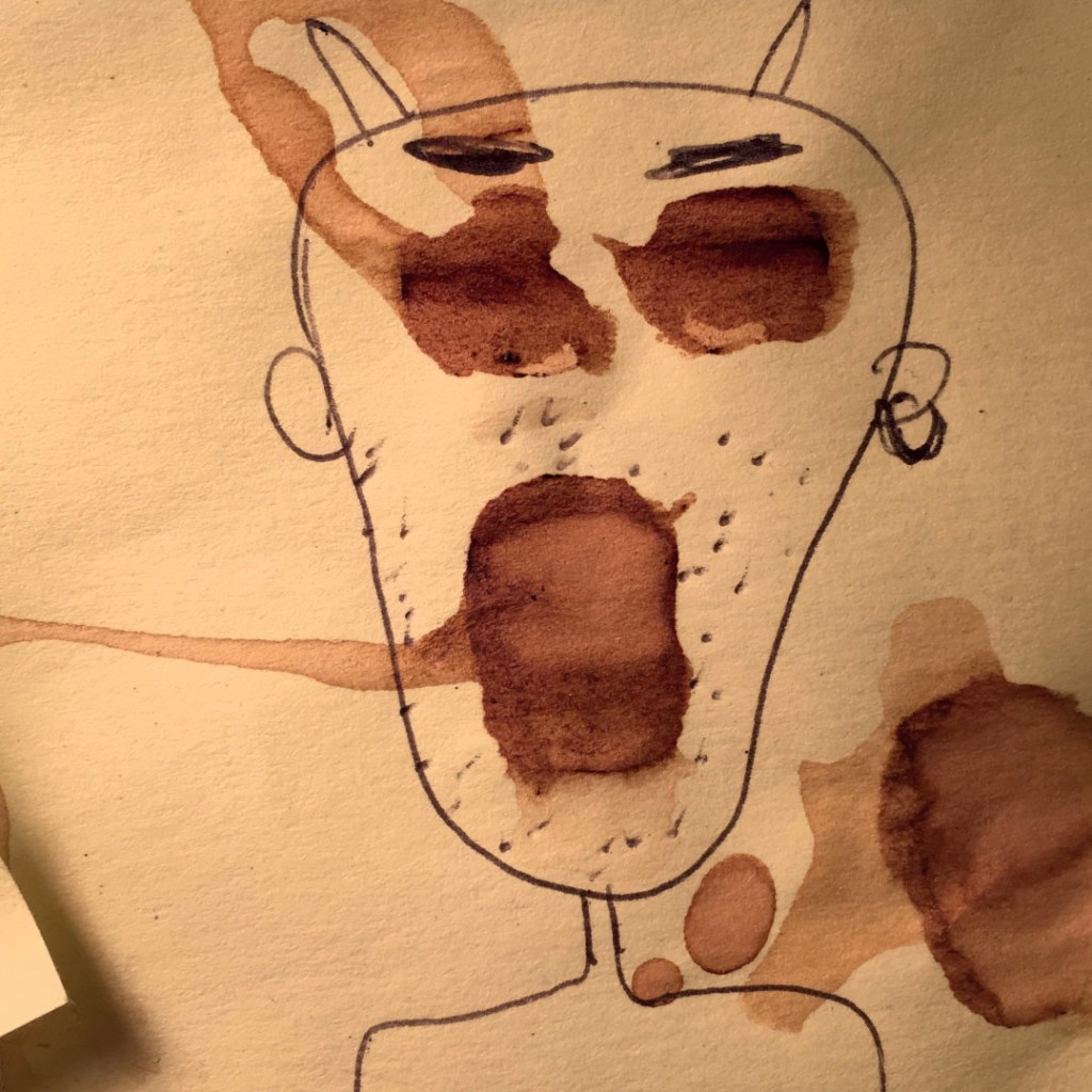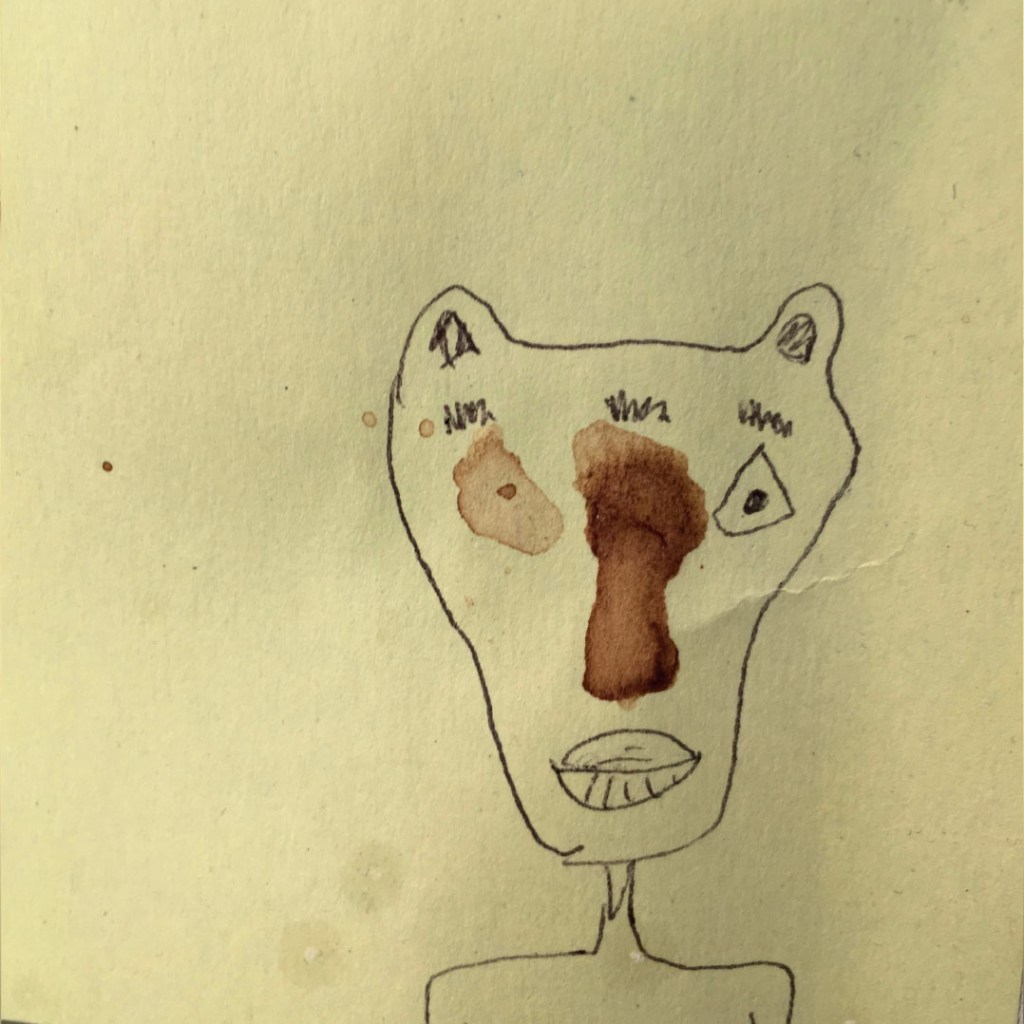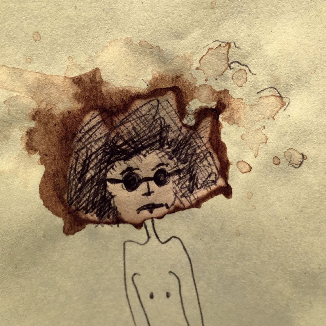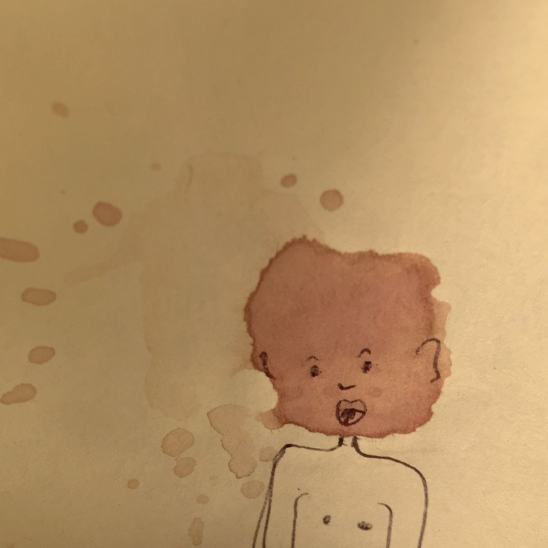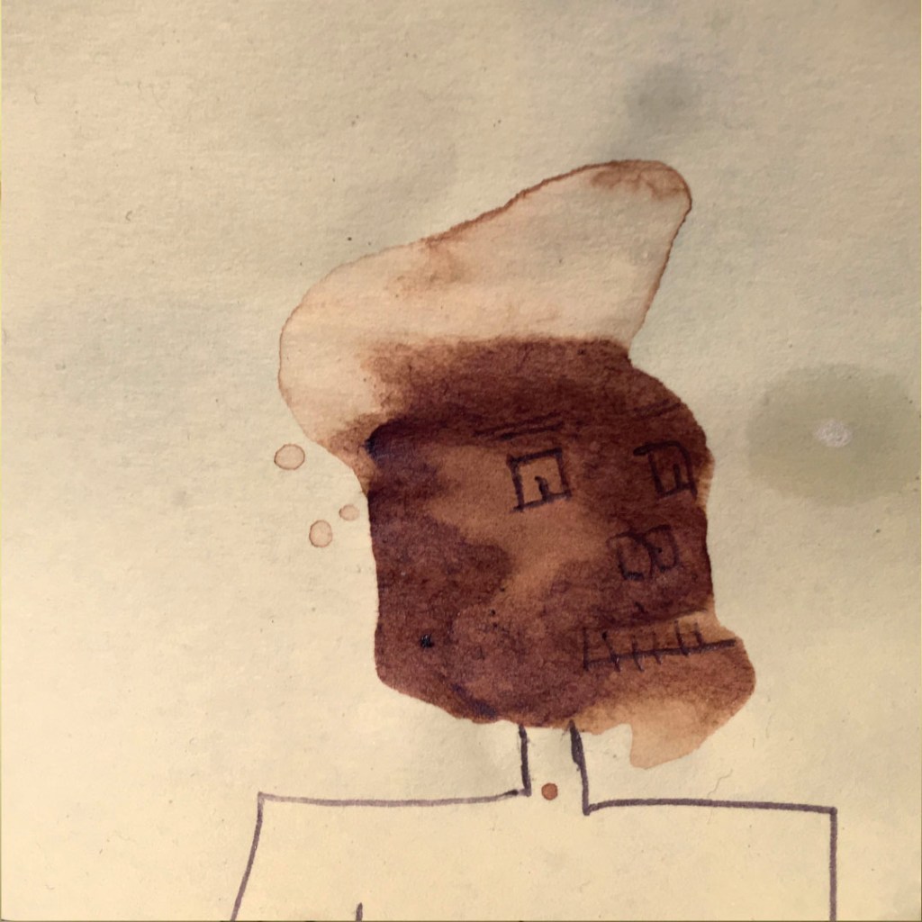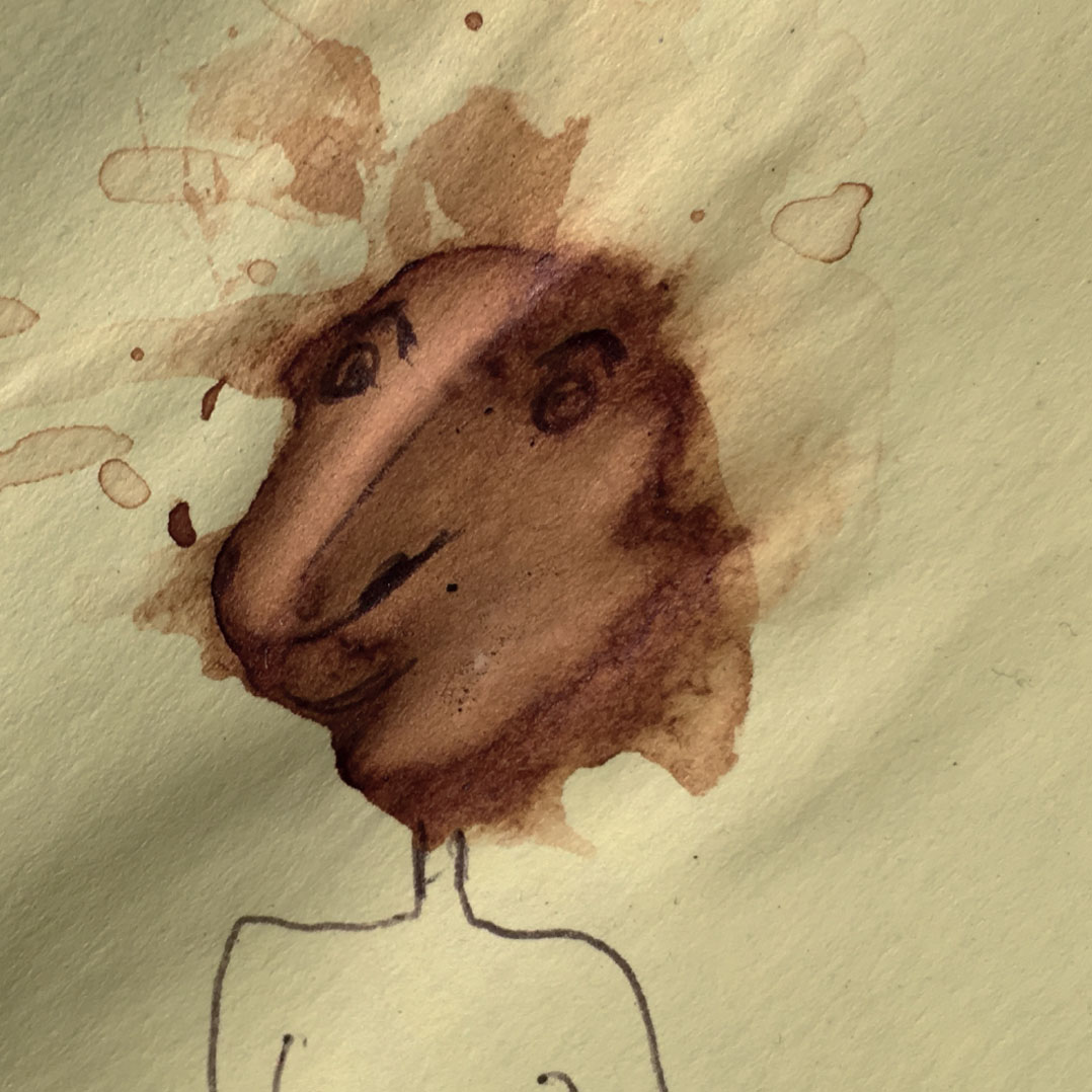 Durant une année entière, tout au long de la journée, en posant nos cuillères à thé sur des Post-it pour éviter que l’eau colorée ne goutte et ne se répande sur nos plans de travail, des tâches de thé se sont formées dessus. Elles se sont diffusées puis une fois sèches et avec l’aide d’un Bic en quelques traits et quelques secondes l’inimaginable à pris vie.