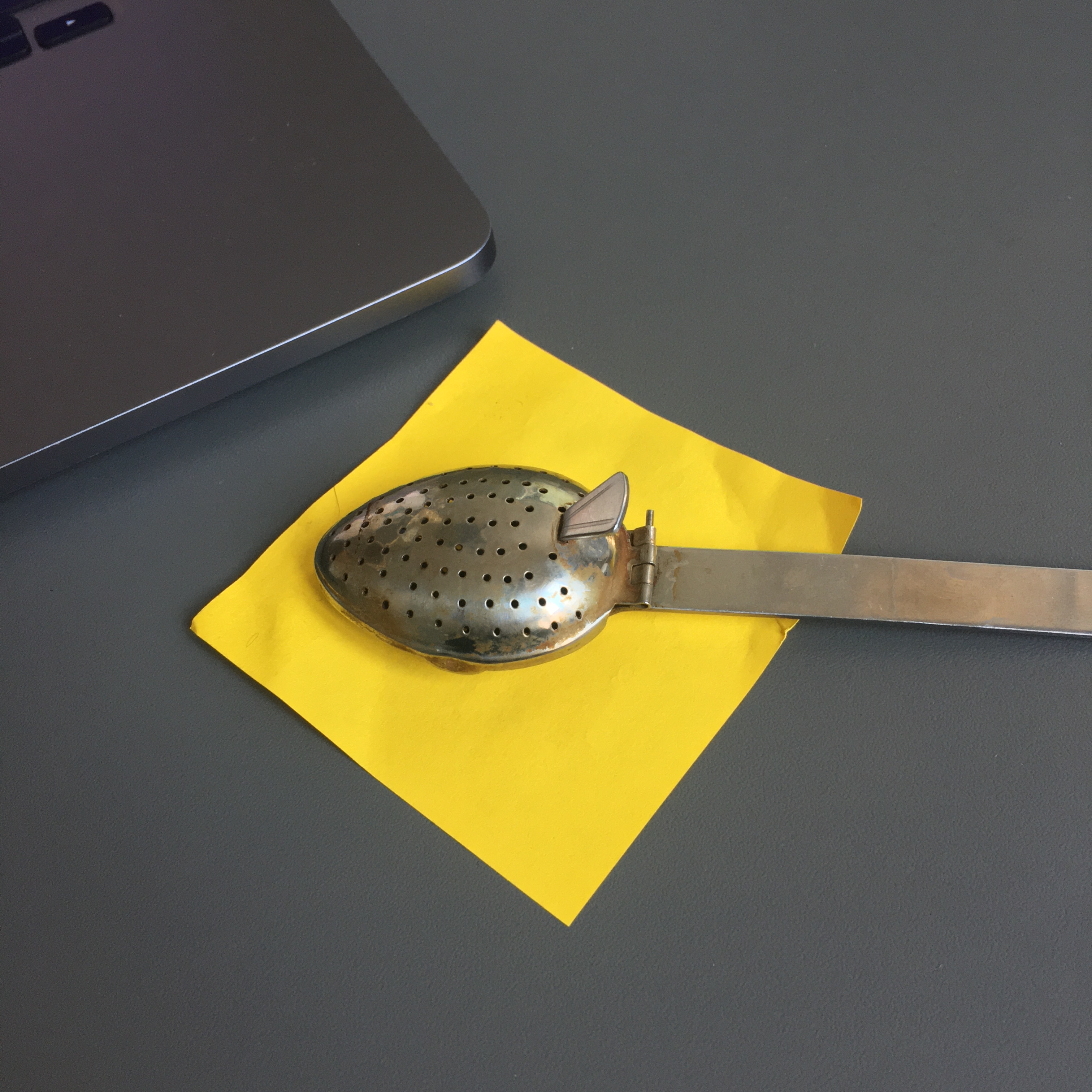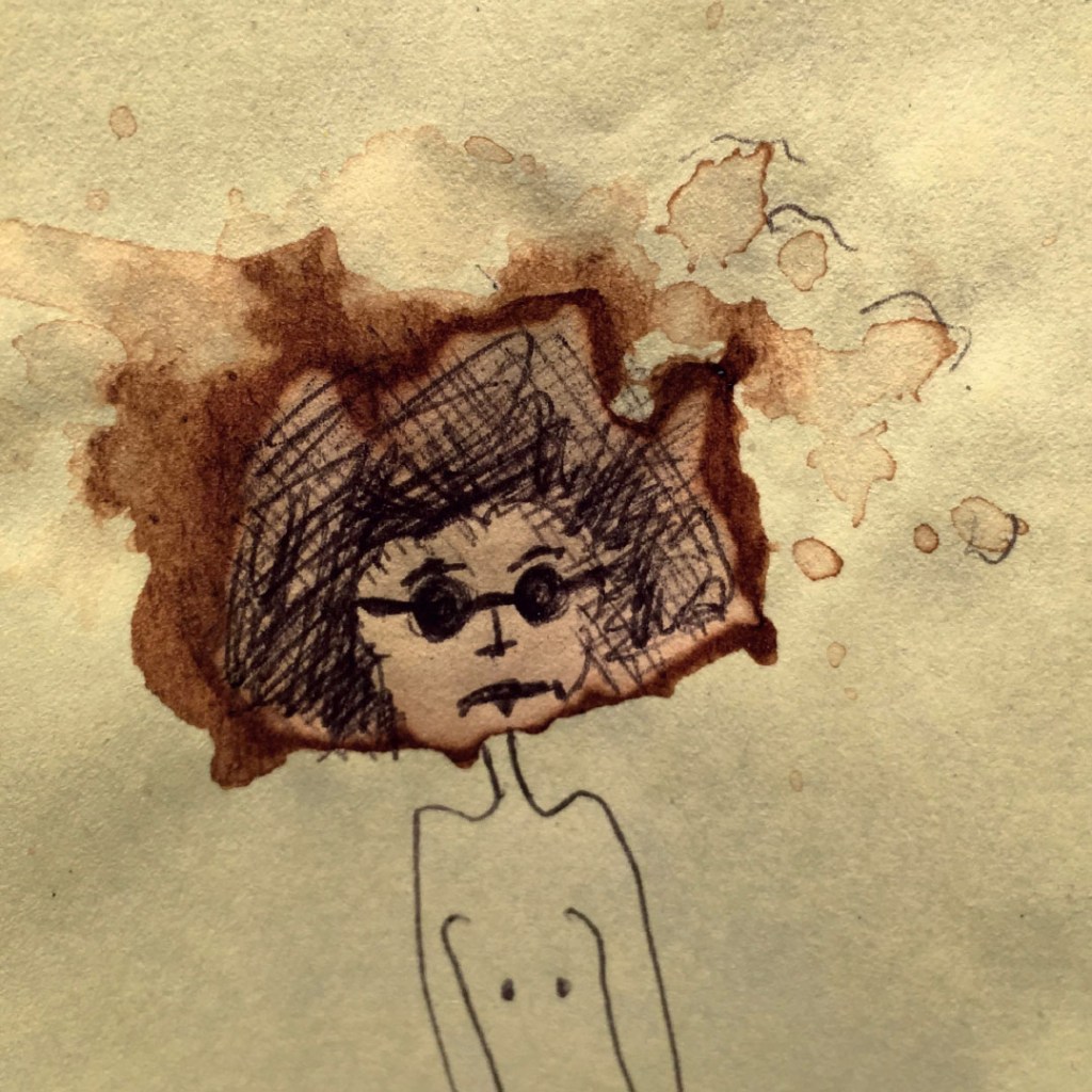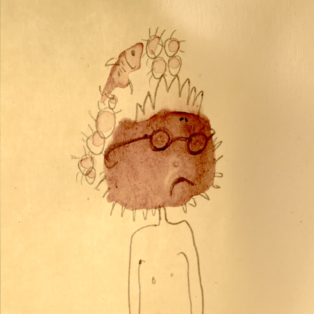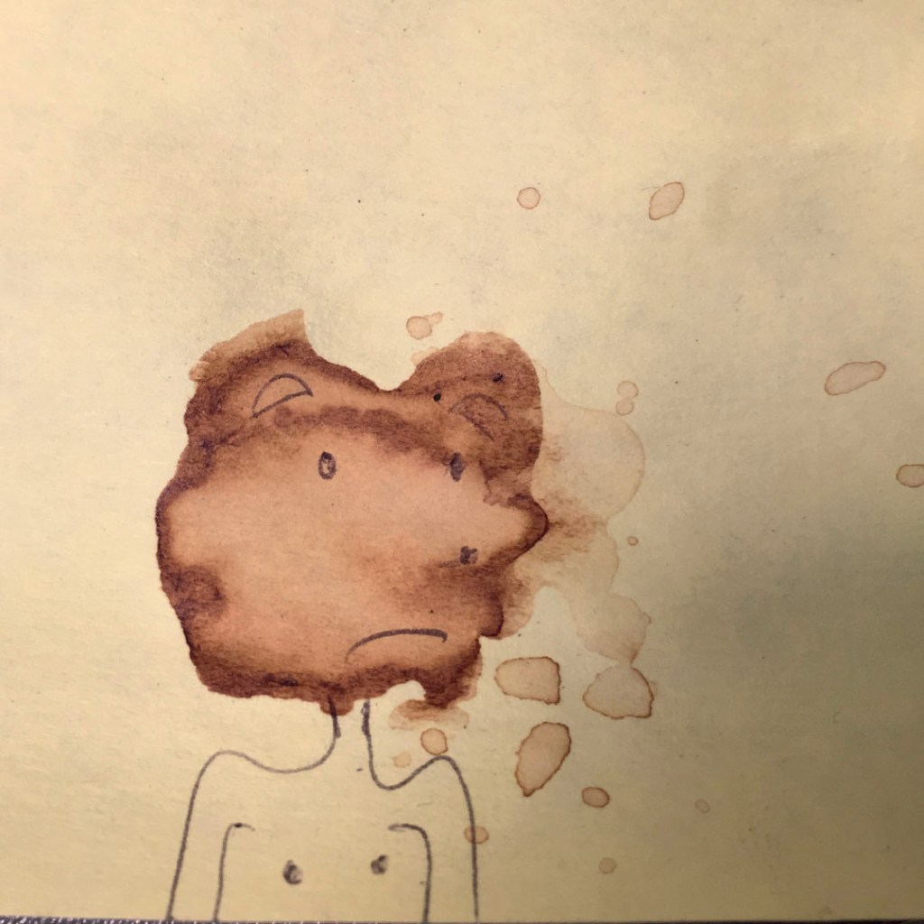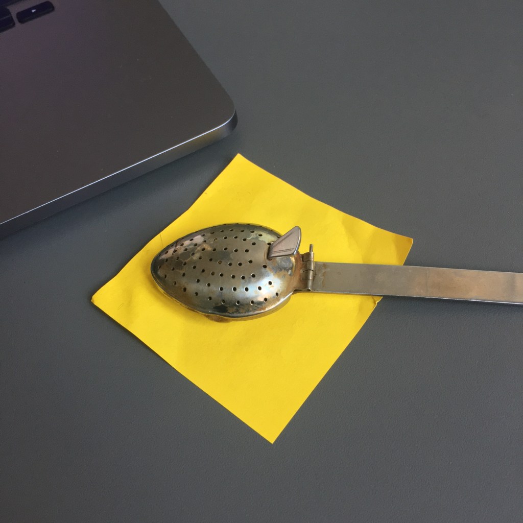 Durant une année entière, tout au long de la journée, en posant nos cuillères à thé sur des Post-it pour éviter que l’eau colorée ne goutte et ne se répande sur nos plans de travail, des tâches de thé se sont formées dessus. Elles se sont diffusées puis une fois sèches et avec l’aide d’un Bic en quelques traits et quelques secondes l’inimaginable à pris vie.
