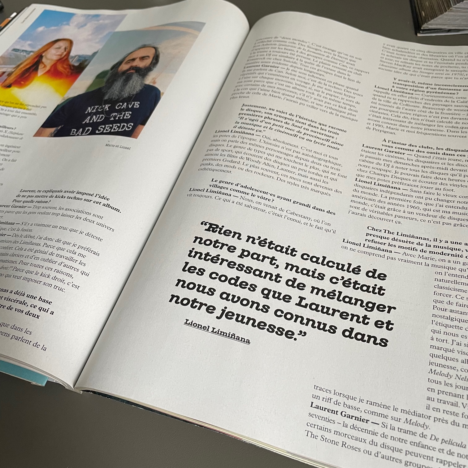 A cette même époque dans les rédactionnels des pages magazines nous avons vu croitre d’autres ruses pour aiguiser notre curiosité, nous inciter à lire. Des petits titres bold entre guillemets et plus gros que le texte initial étaient dispersés au milieu des colonnes de textes ou posés-là dans un espace blanc et vierge afin que nous les voyons en premier et que notre lecture commence là et ça marchait très bien ! La première chose que l’on voyait lorsque nous ouvrions la double page et que nous lisions n’était pas le titre principal mais bien ces 2, 3 lignes de texte entre guillemets qui nous sautaient aux yeux.
